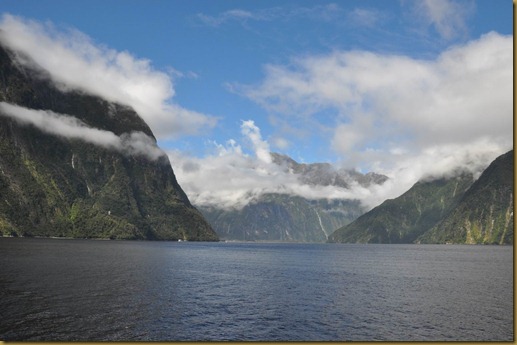 Mount Pembroke on the right and Mitre Peak 1682m on the left it claims to be one of the highest mountains in the world to rise up from the ocean floor.